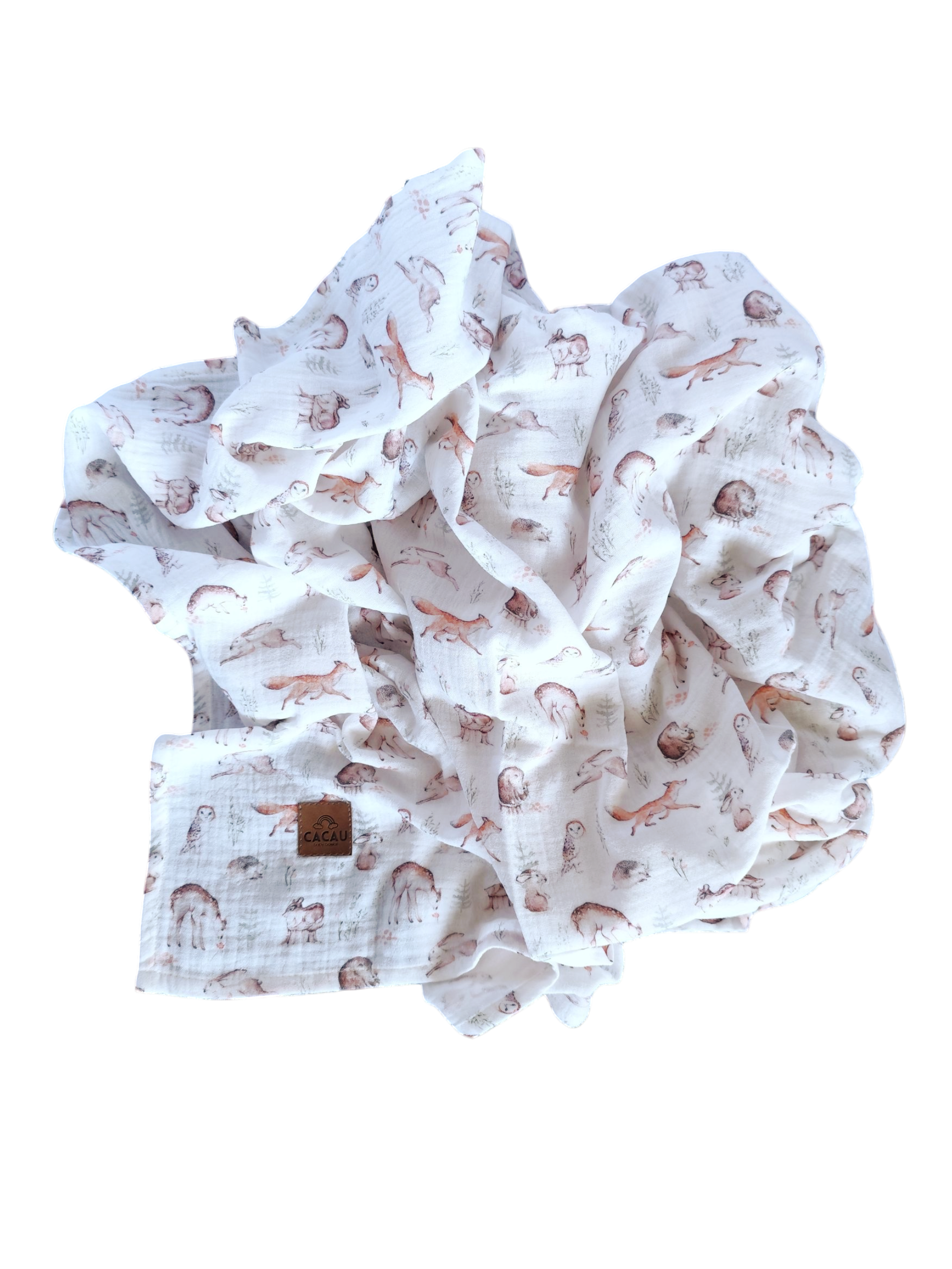 Swaddle de muselina 100% algodón, cuidadosamente confeccionado a mano, 120x120cm.