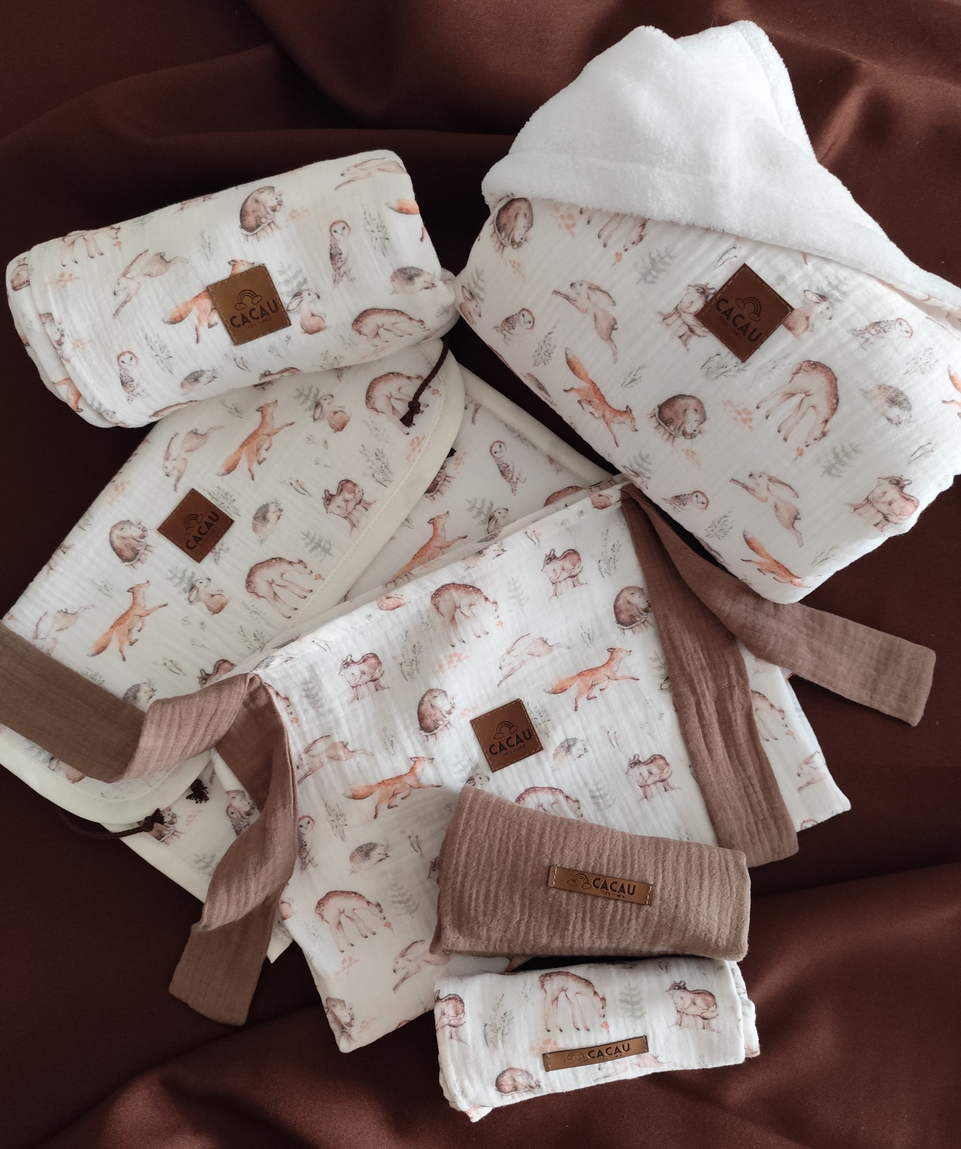 Manta de Musselina e Pêlo tamanho berço (100x70cm);