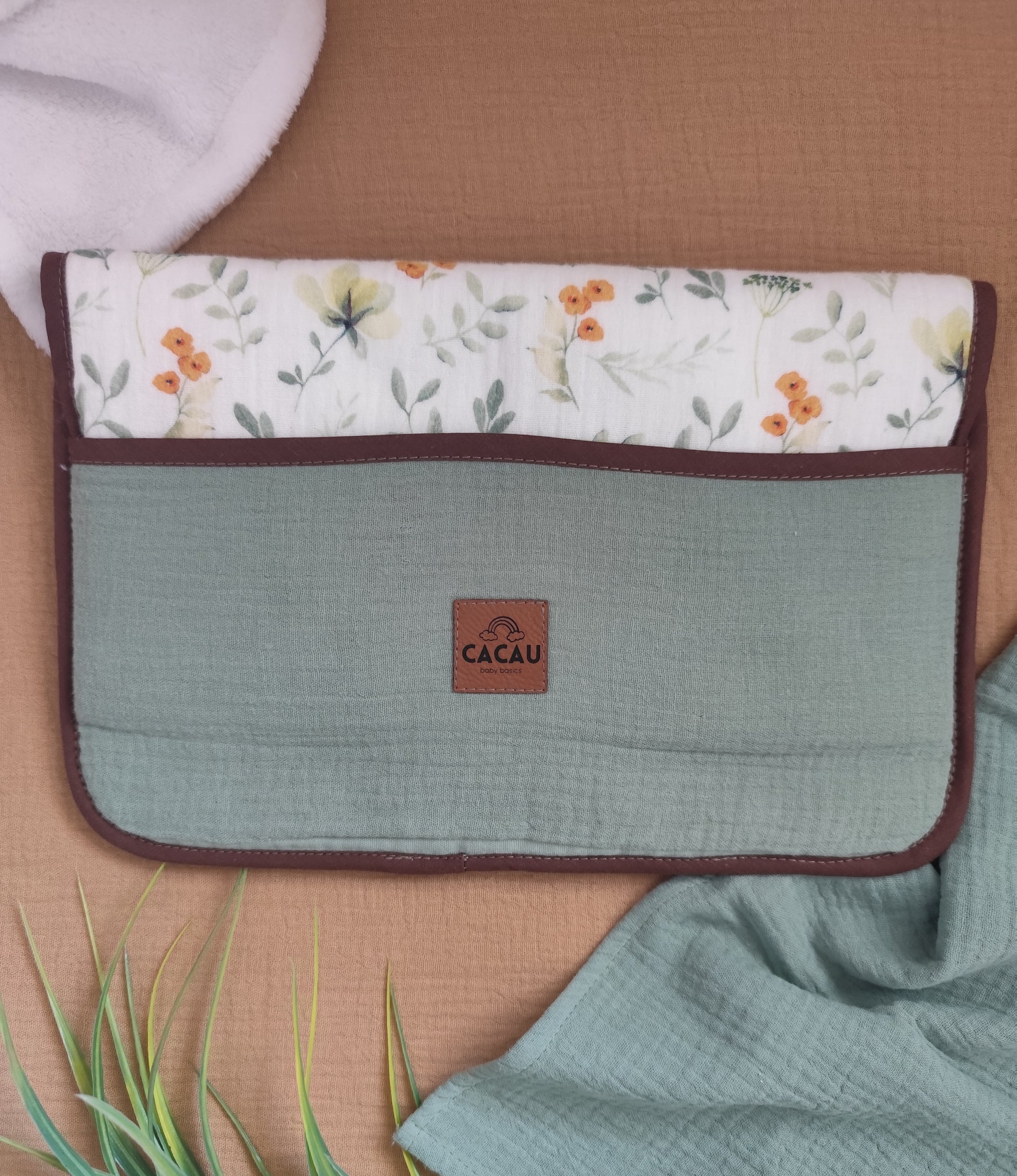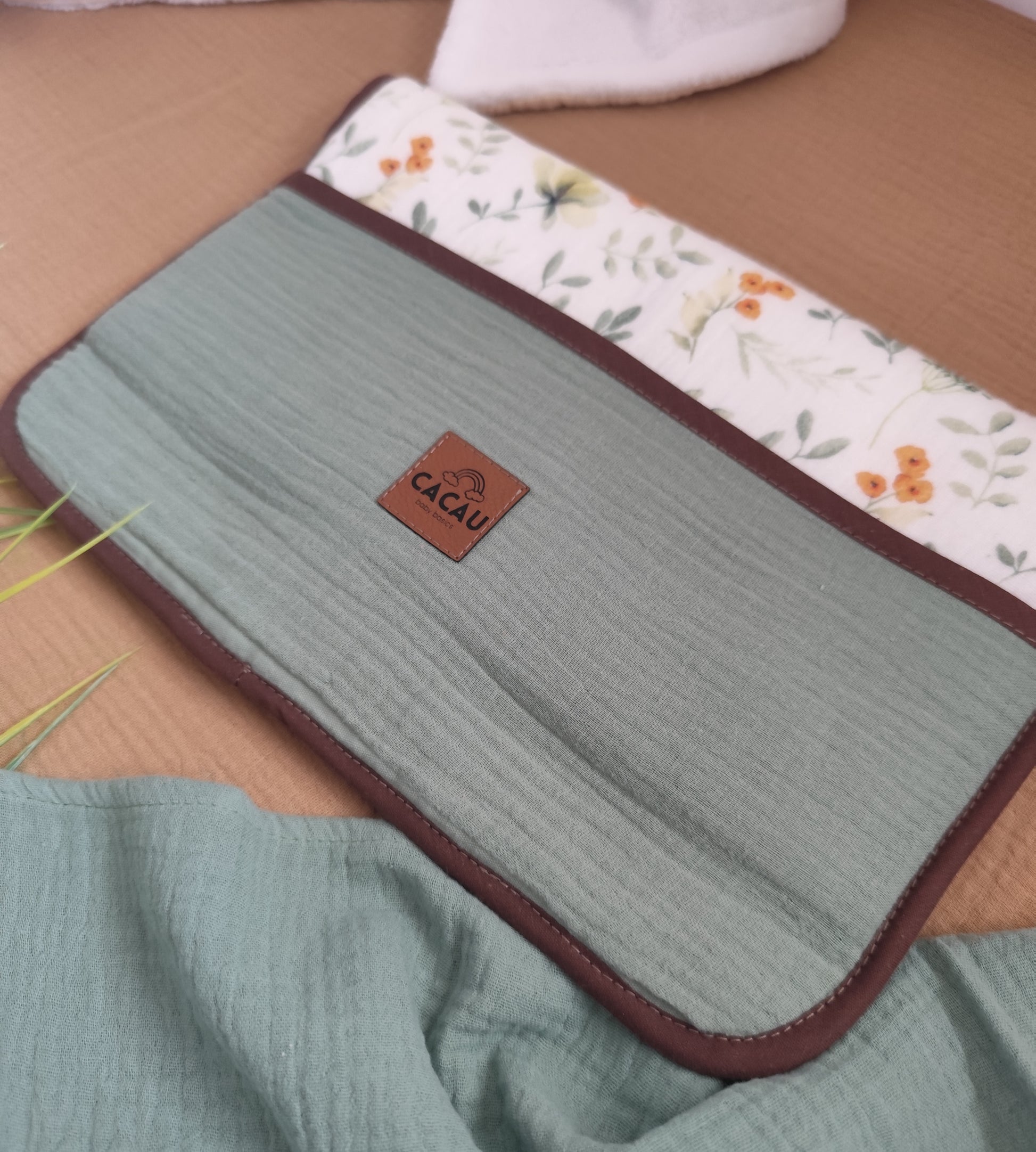 Feito à mão em Musselina e Turco, este muda fraldas portátil tem enchimento fofo para garantir conforto em qualquer superfície.