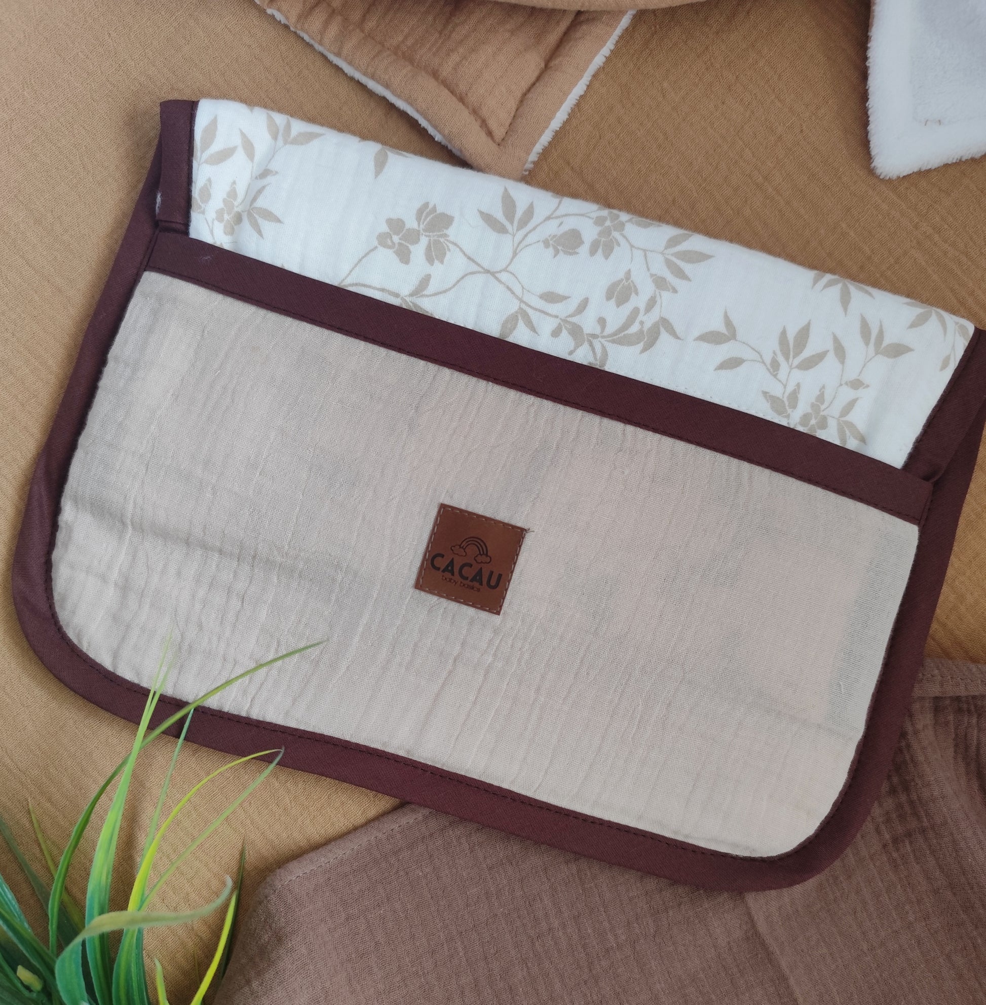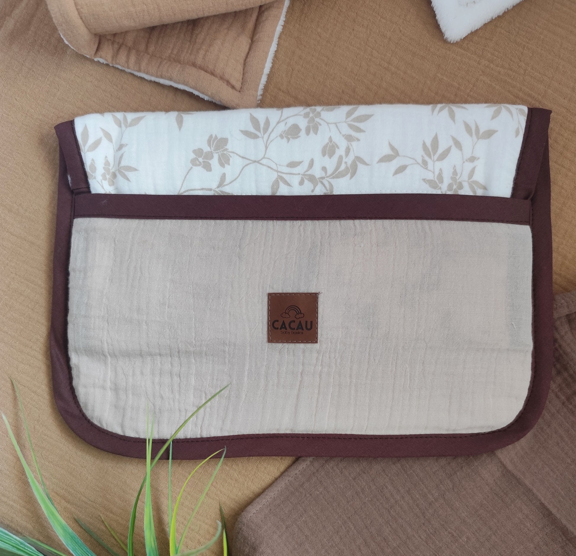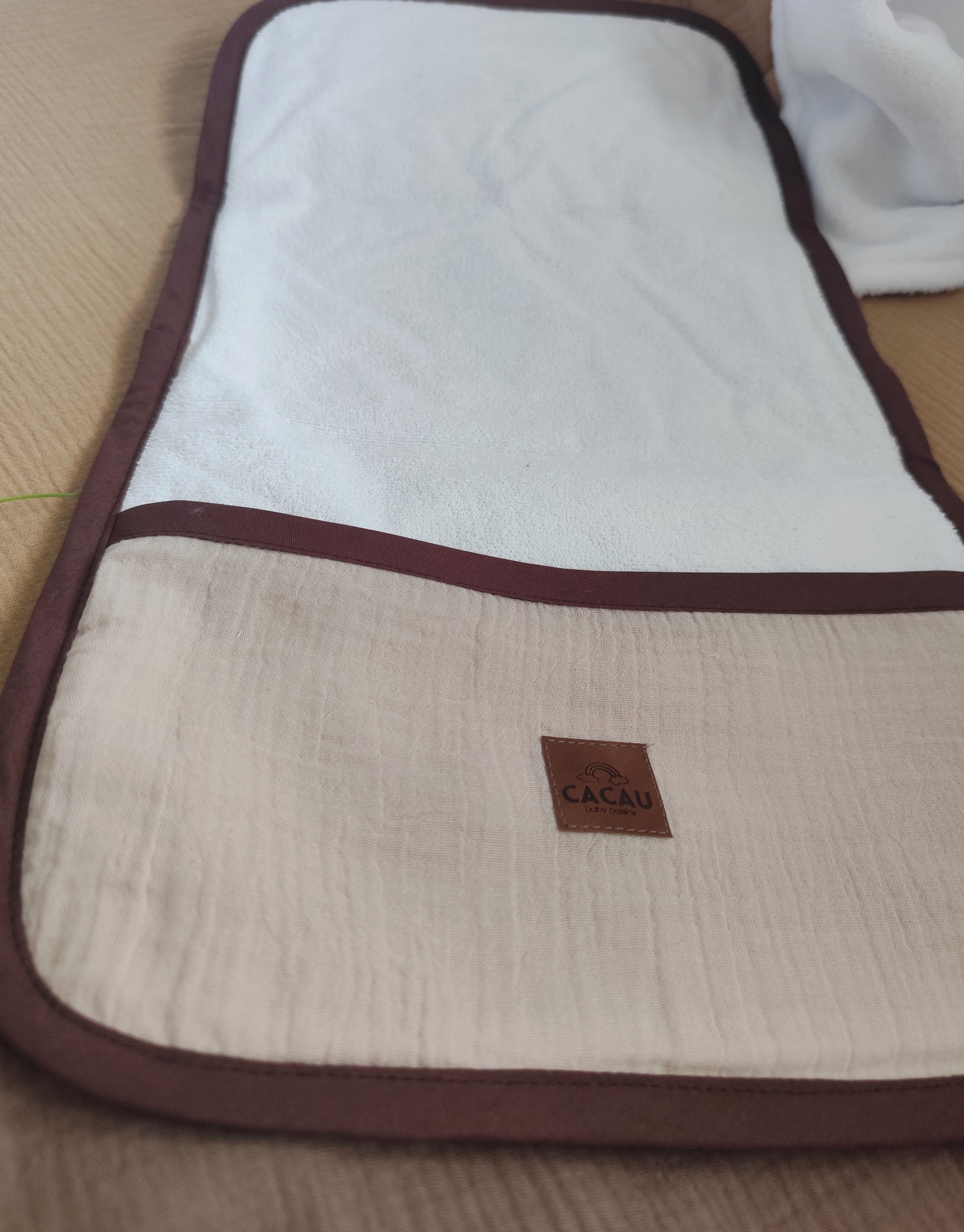 Feito à mão em Musselina e Turco, este muda fraldas portátil tem enchimento fofo para garantir conforto em qualquer superfície.