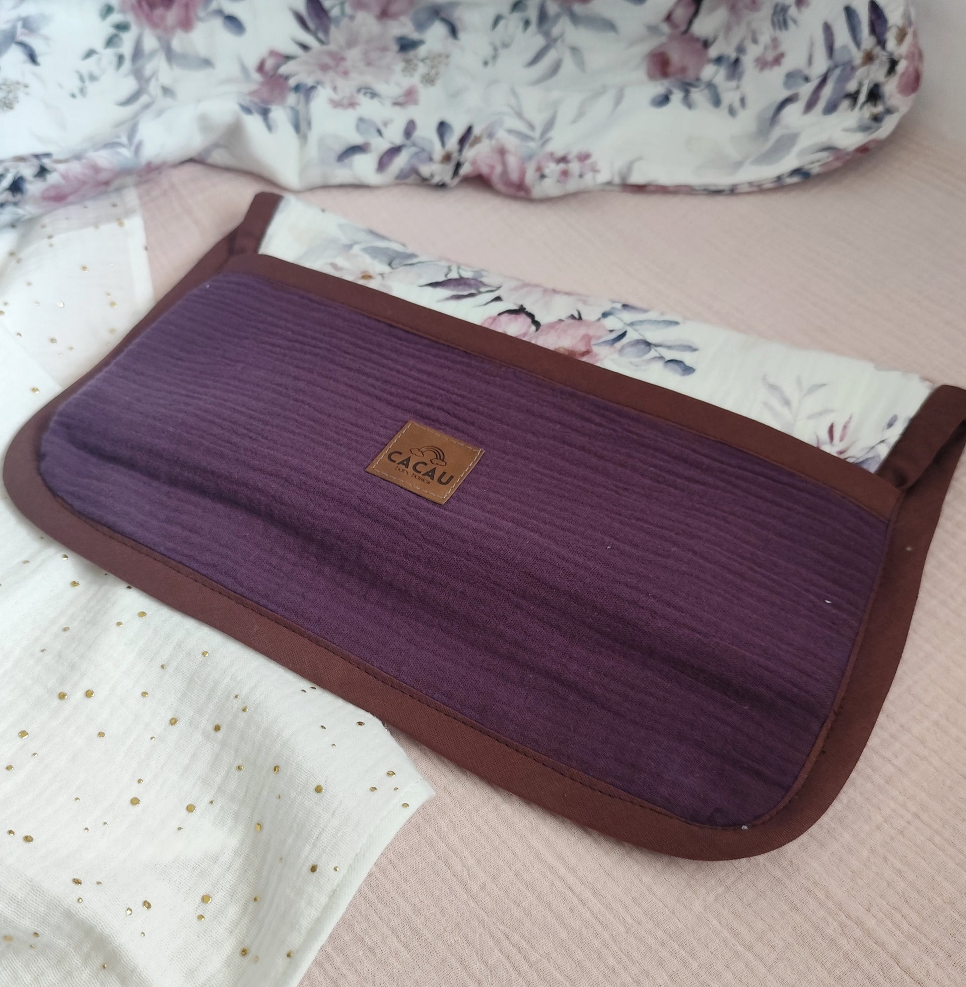 Feito à mão em Musselina e Turco, este muda fraldas portátil tem enchimento fofo para garantir conforto em qualquer superfície.