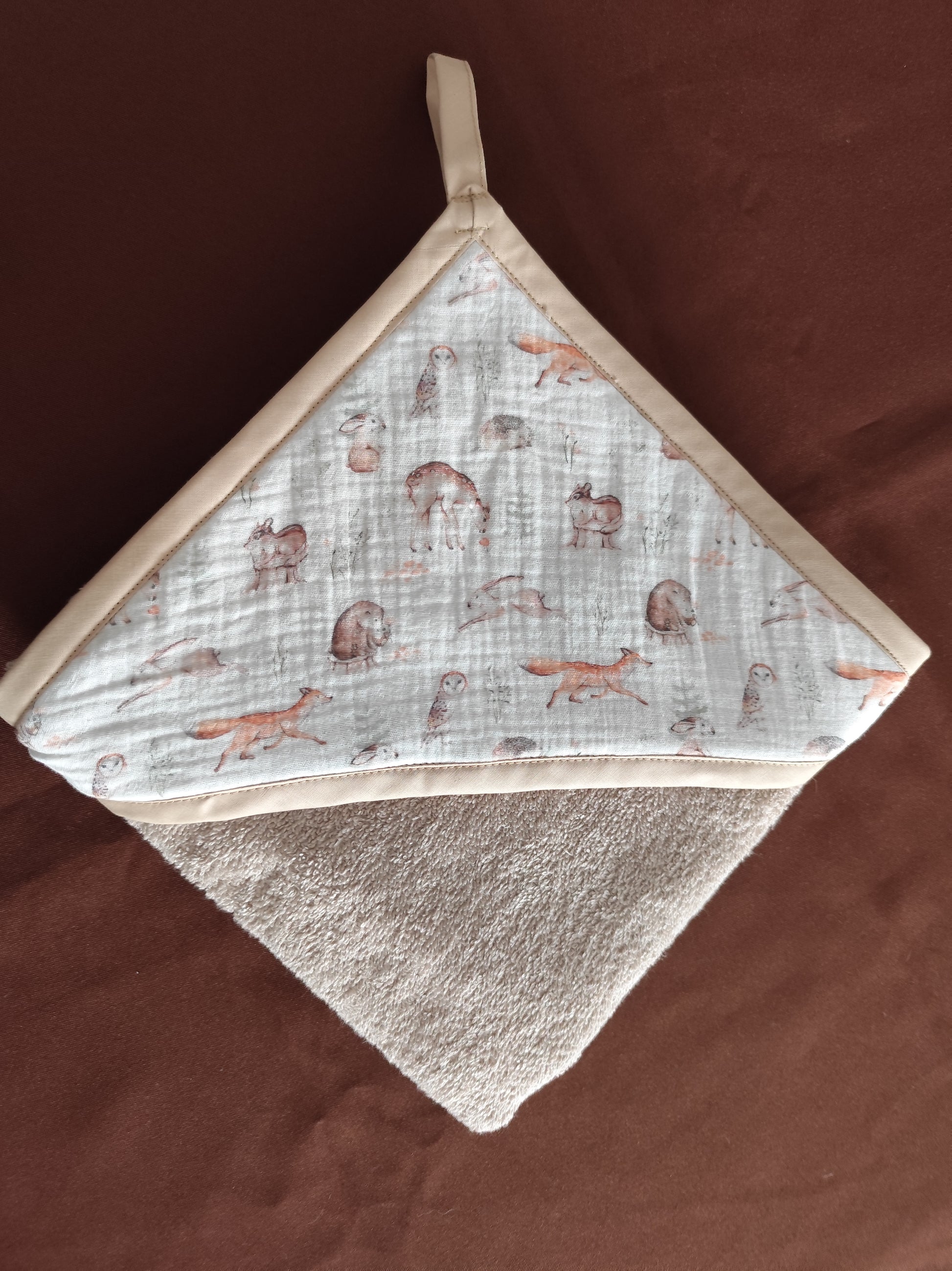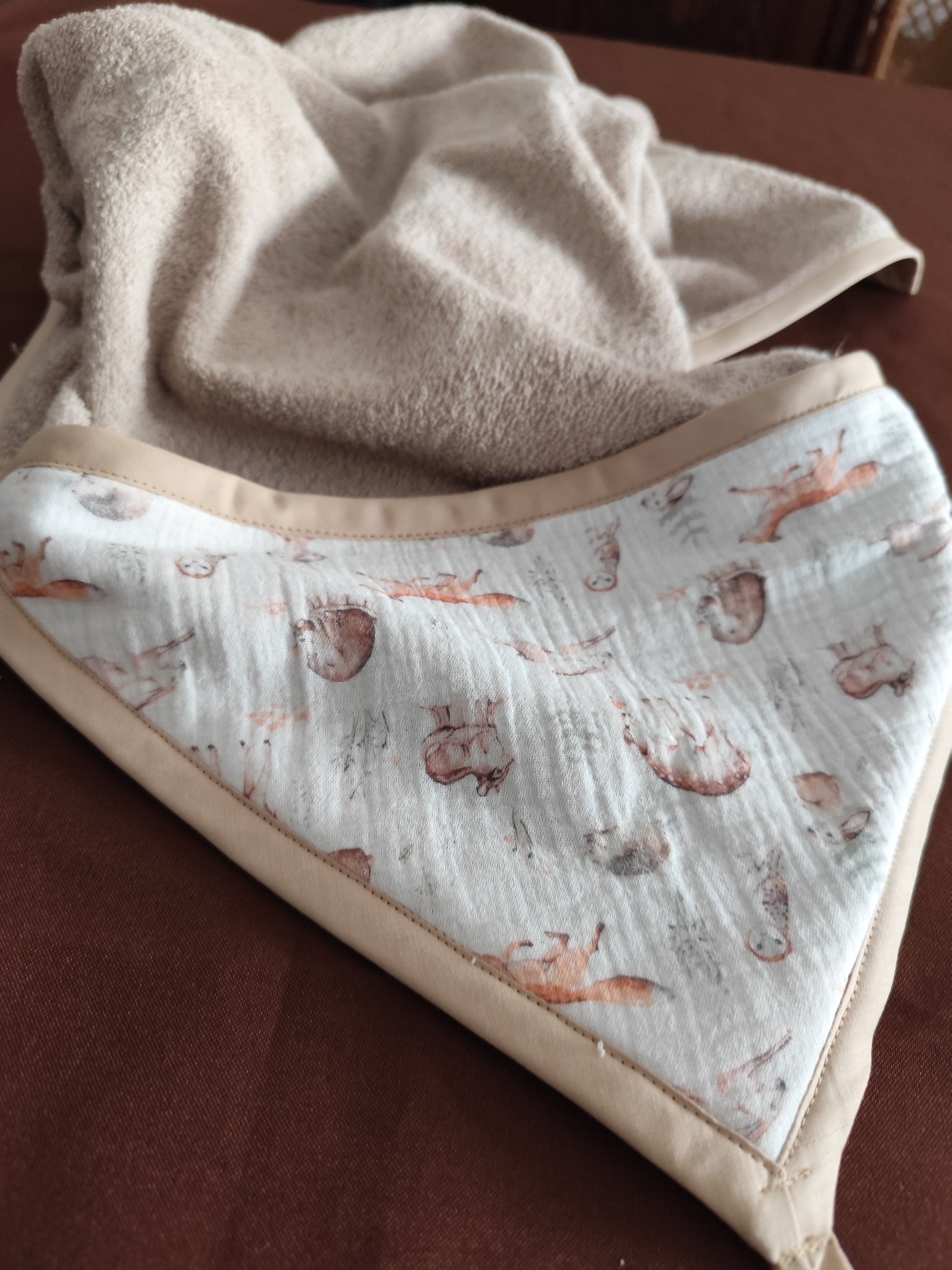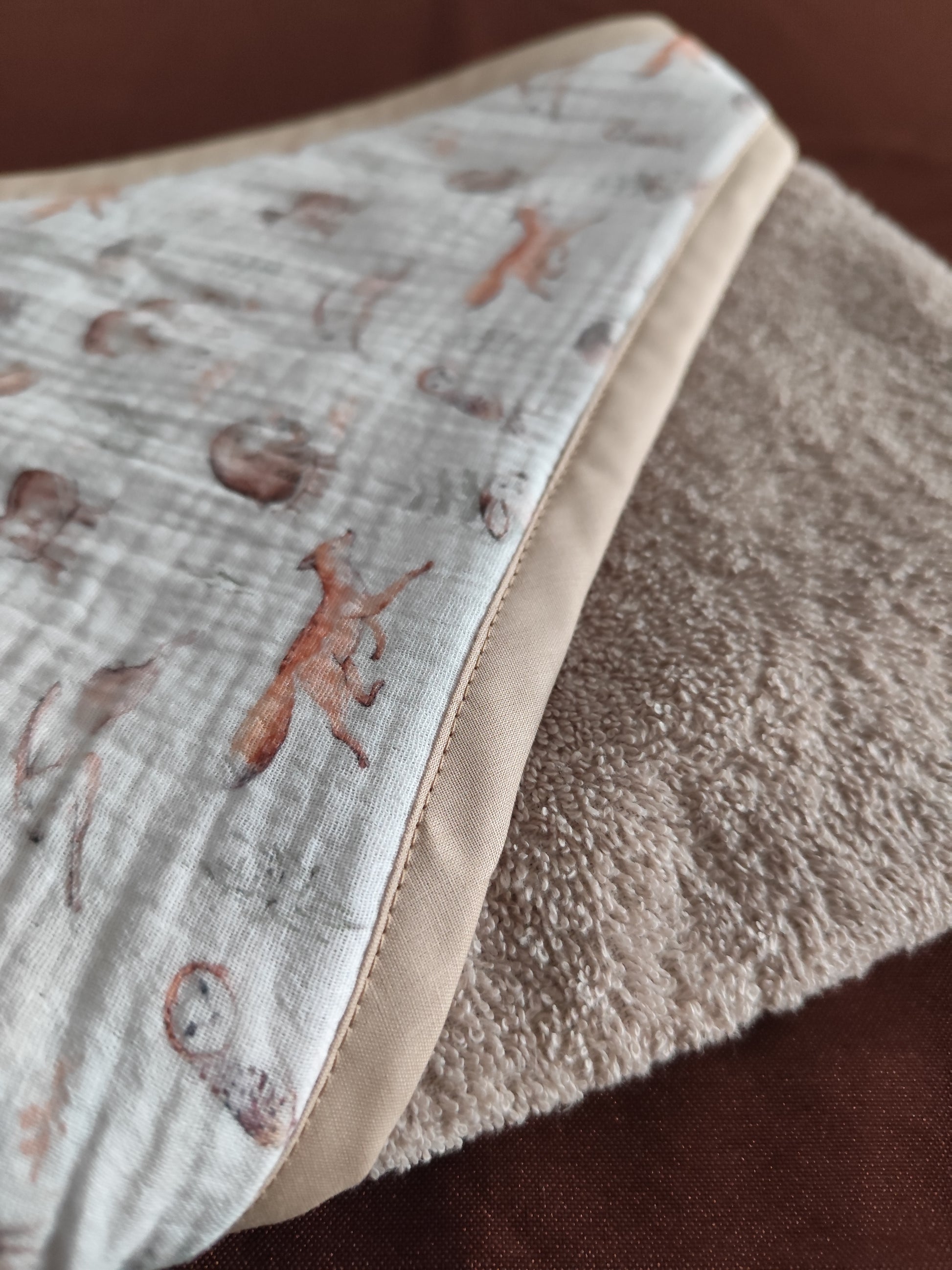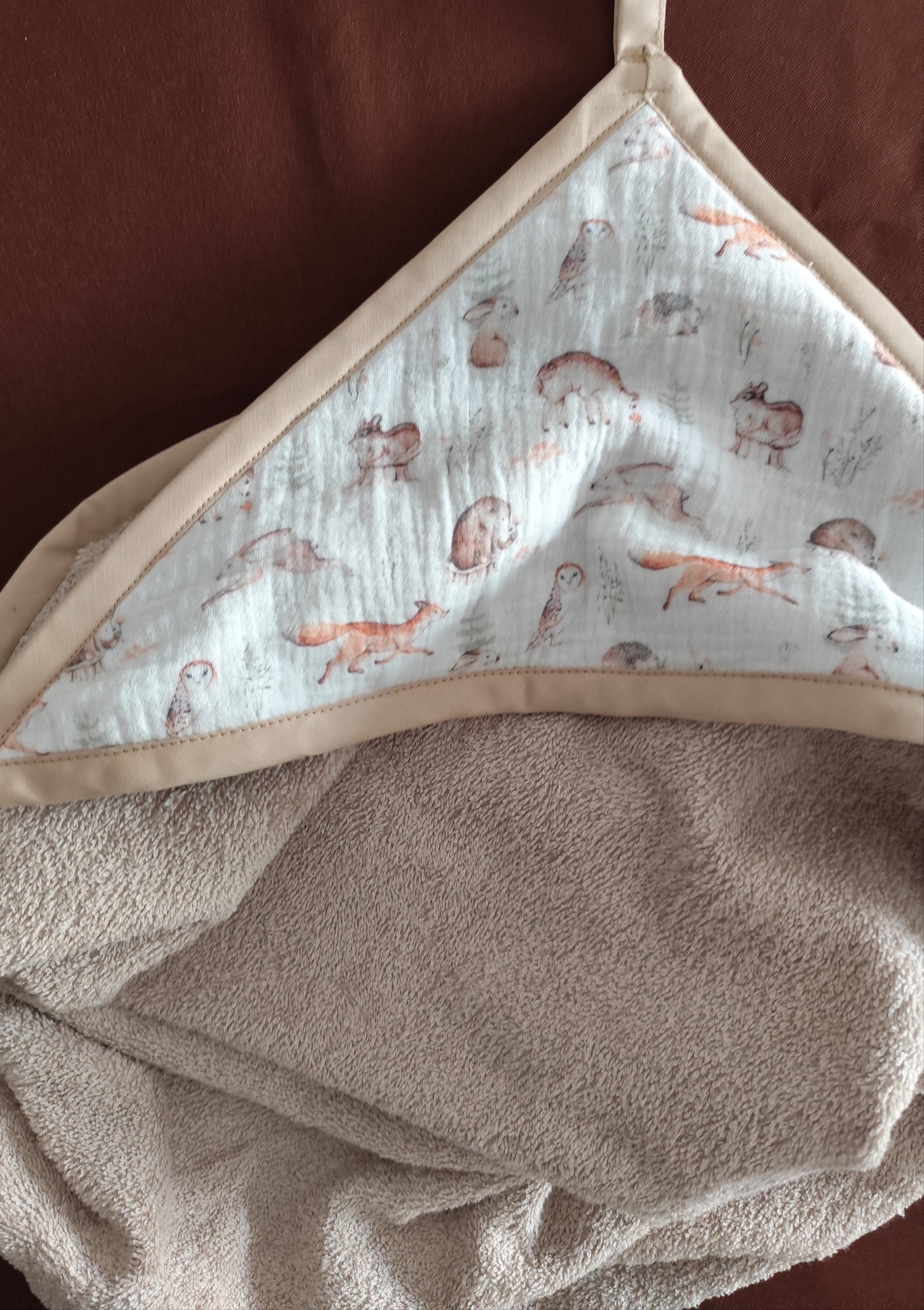 Toalha de banho ultra macia e absorvente, oferecendo uma experiência de secagem confortável após o banho. Com barretinho, mantém a cabeça do bebé aquecida e protegida enquanto o envolve em suavidade. Feita à mão em turco de algodão de alta qualidade, é ideal para a pele sensível do bebé e pode ser facilmente lavada, garantindo durabilidade e conforto em cada uso.